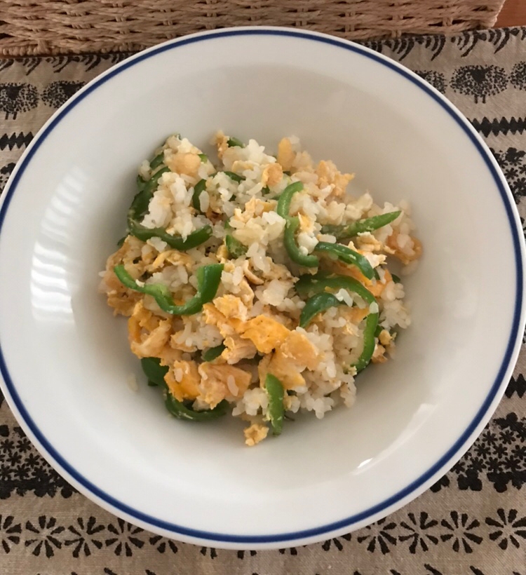 鶏ひき肉とピーマンのめんつゆ焼きめしで昼ごはん おとなひとり暮らしのごはん